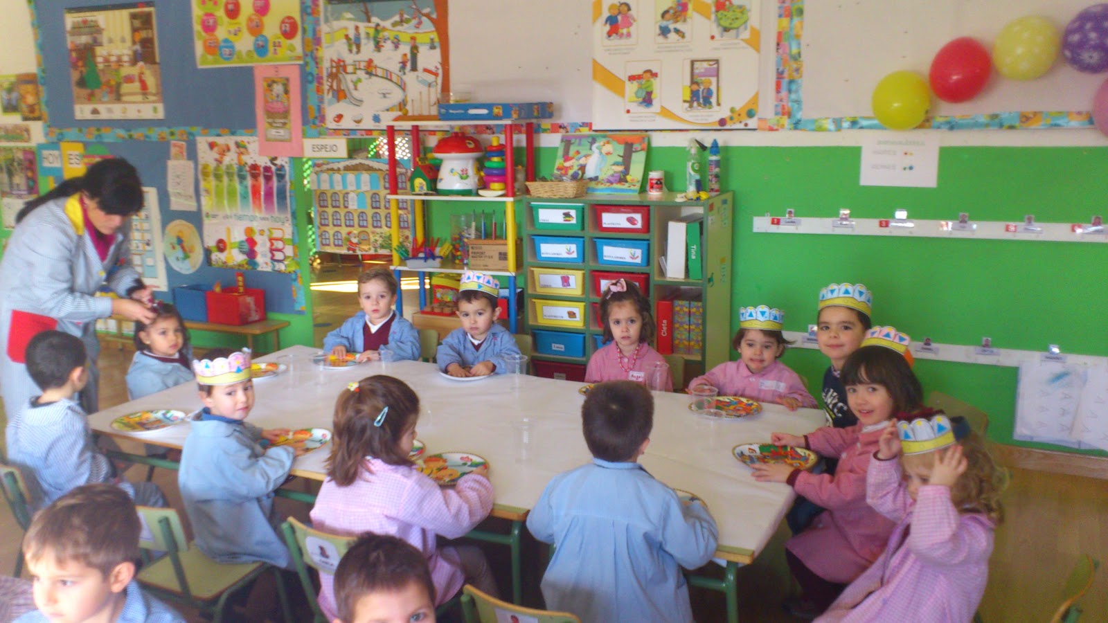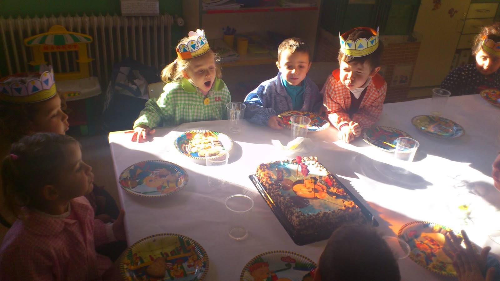 Hoy estamos de fiesta, celebramos el cumpleaños de todos los niños y niñas que han nacido entre agosto y diciembre. !Somos un montón!, ni mas ni menos que 10, junto con la profe Zara y el hijo de la profe Daniel, que vino a hacernos una visita muy especial.
