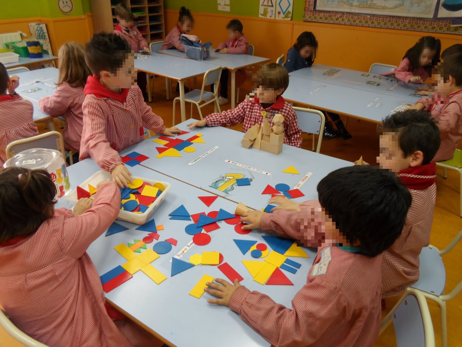 La realización de este taller nos permite la acción calmada y reflexiva centrándonos mucho mas en el proceso que en el resultado. Cada 10 minutos cambian de juego y mi labor es ir poco a poco enseñando la técnica de cada mesa. Es sorprendente cuando ves como crean sus propios juegos y surgen nuevas formas de pensar….las habilidades lógico matemáticas se están construyendo …..
