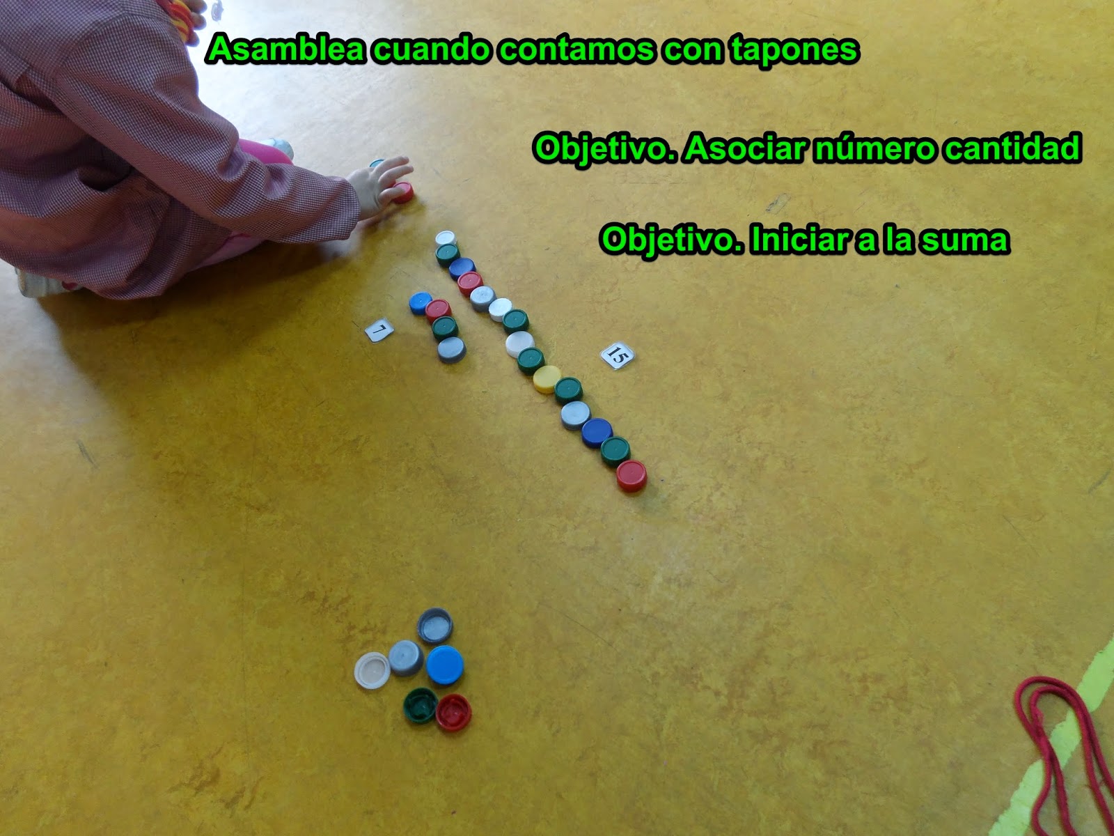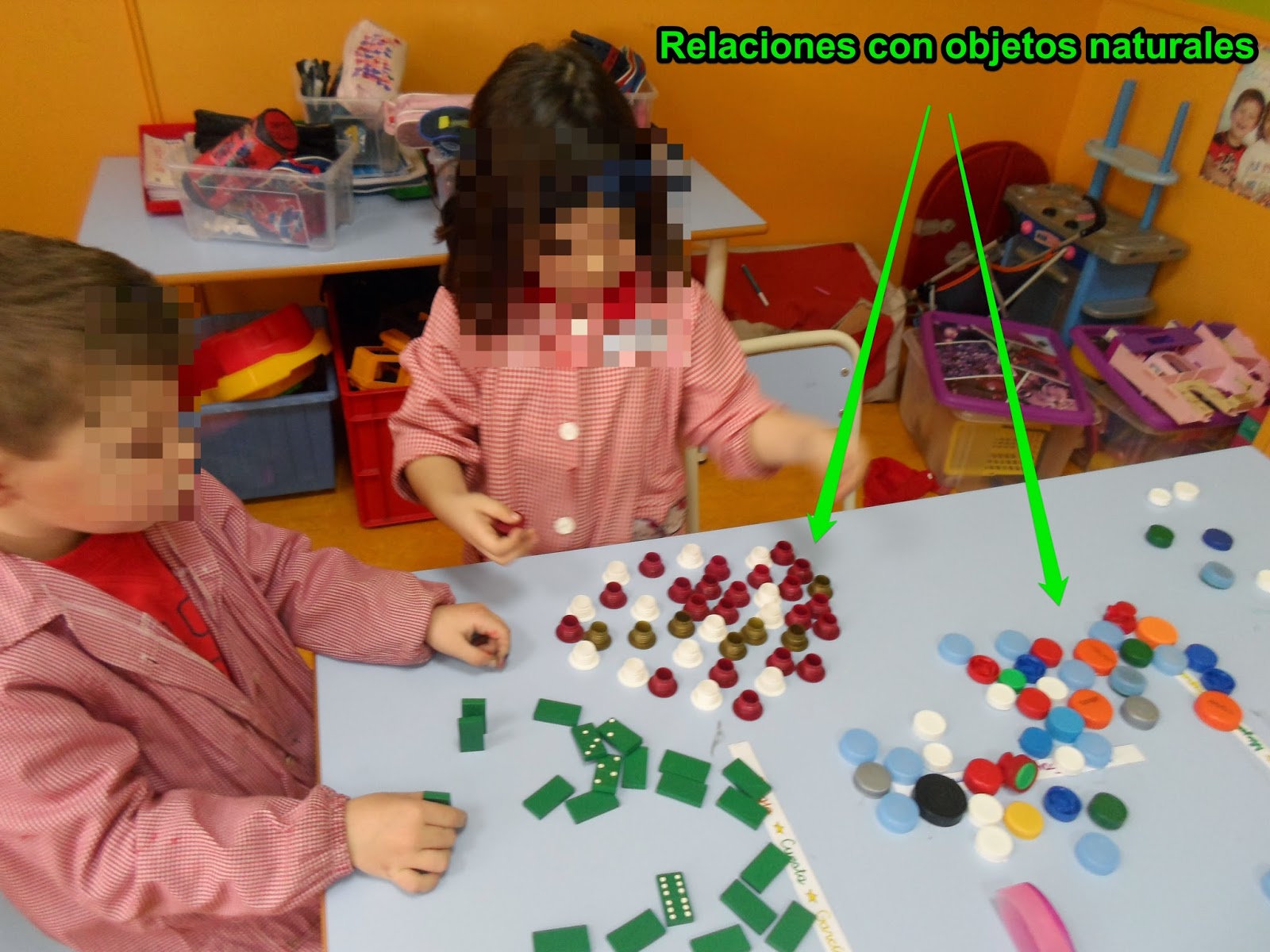 Utilizar elementos naturales para establecer relaciones lógicas (gracias por los tapones a todas las familias)