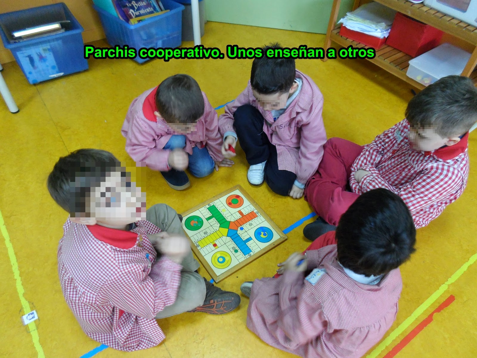 En nuestro primera sesión hemos presentado los juegos, poco a poco iremos introduciendo mas, especialmente de lógica. Cada mesa de cada equipo se convierte en un lugar para pensar, después de establecer ciertas normas generales sobre el juego cooperativo