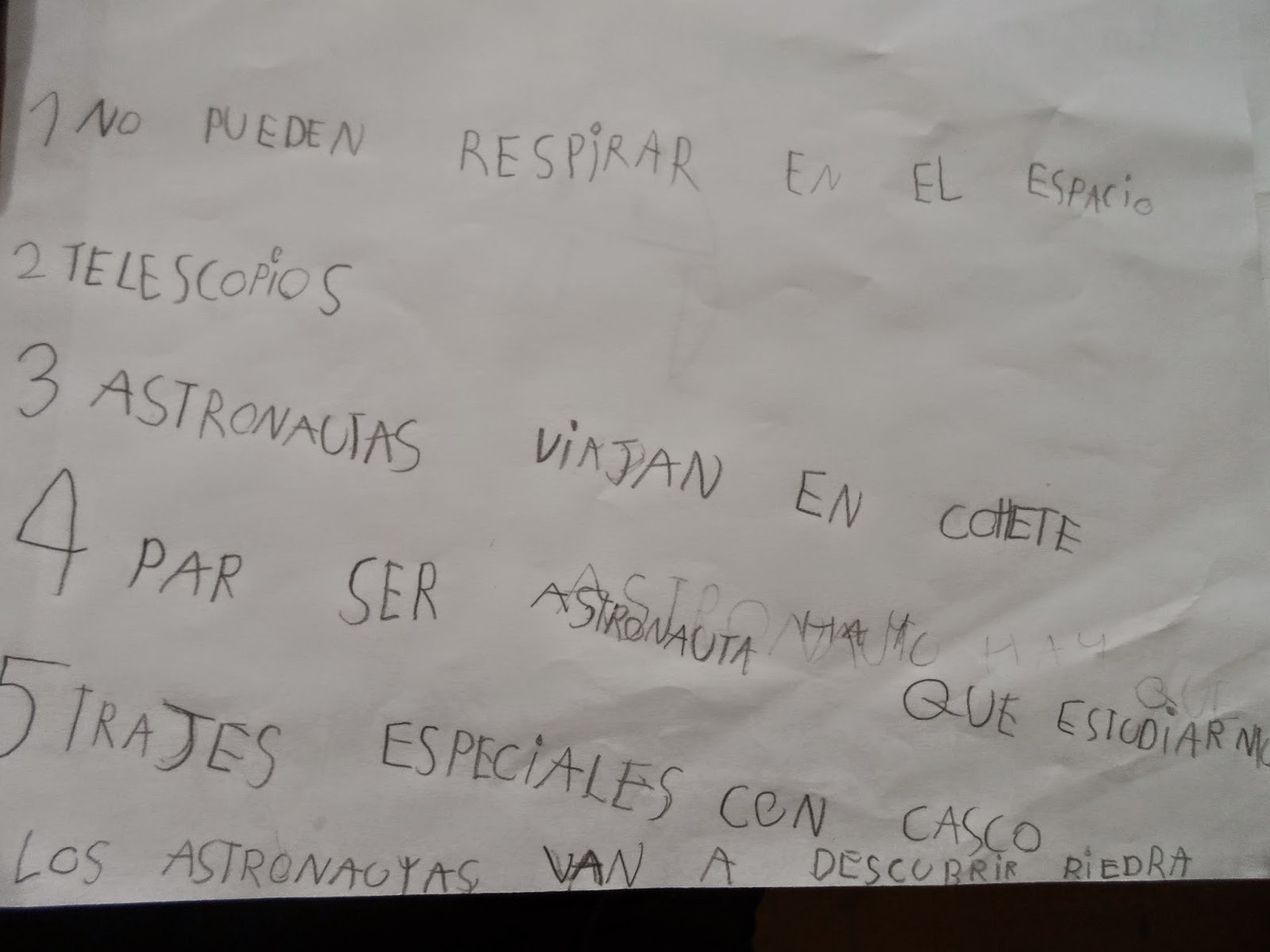 Bueno, ahí va nuestro comienzo….como ya lo hemos hecho antes…creo que ellos la conocen la rutina…pero este tema les encanta….a la hora de plantear las primeras fases de motivación y pensar ¿Qué sabemos? el reto ha sido acotar un poco el tema. Del Universo sabían muchíiiiisimas cosas pero de los astronautas no tantas….